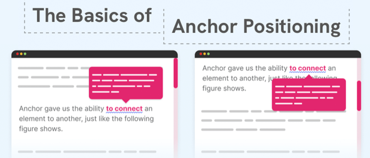 ⚓️ The Basics of Anchor Positioning — Ahmad runs us through the basics of Anchor Positioning (placing an element based on the position of another element). He highlights the problem it’s looking to solve, along with how this feature will work. All told with plenty of code and excellent visual examples. Browser support isn’t universal just yet, but it’s worth learning as it’s going to be super useful. Ahmad Shadeed |