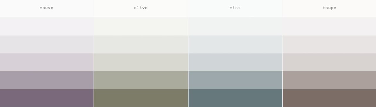 The Four New Color Palettes in Tailwind CSS 4.2 — A quick look at the new color swatches (namely Mauve, Olive, Mist and Taupe) recently added to Tailwind CSS 4.2. Chris Brandrick |