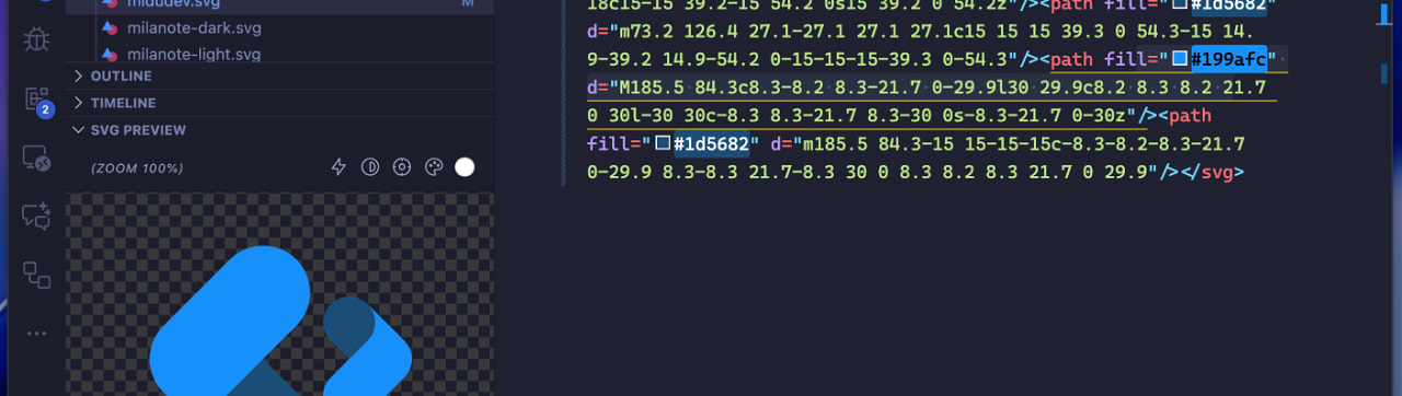 Better SVG: VS Code Extension for Editing SVG Files with Live Preview — Lots of useful features including live preview, color picker, zoom/pan controls, editable currentColor value for color schemes, dark background toggle, and SVGO integration. Miguel Ángel Durán García |